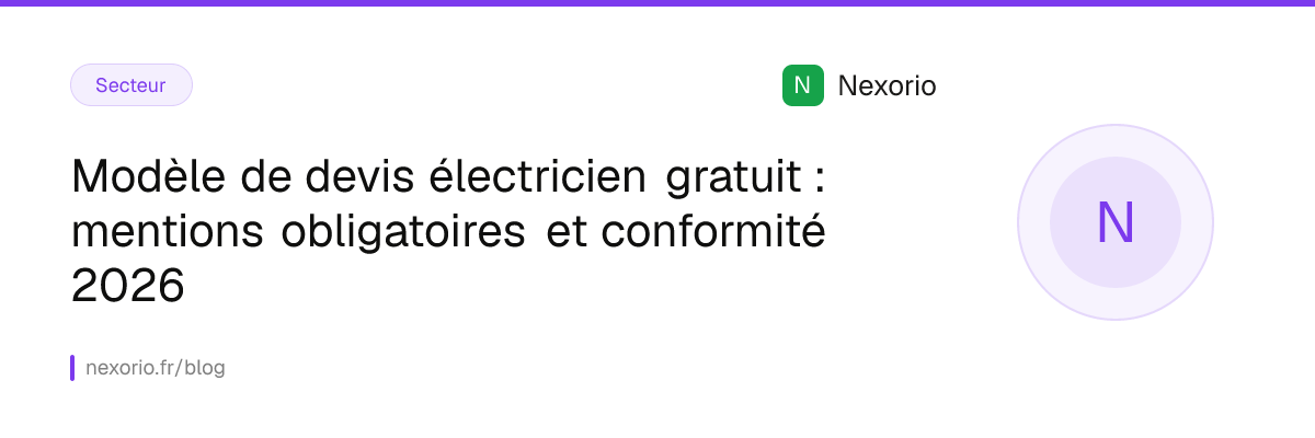 Un devis électricien conforme doit comporter des mentions légales précises, appliquer les bons taux de TVA selon le type de travaux, et depuis 2026 pouvoir se convertir en facture Factur-X en un clic. Ce guide détaille toutes les mentions obligatoires, les taux de TVA par type d'intervention et explique comment créer votre devis et le transformer en facture conforme avec Nexorio, gratuitement.